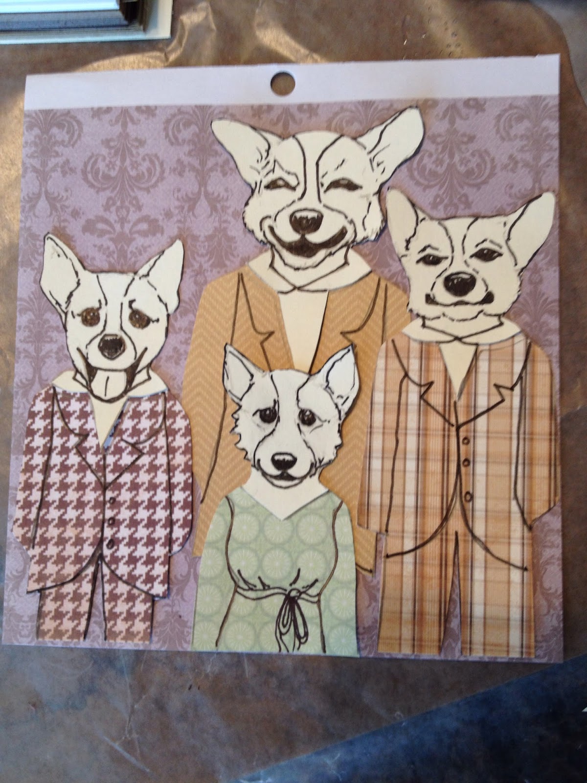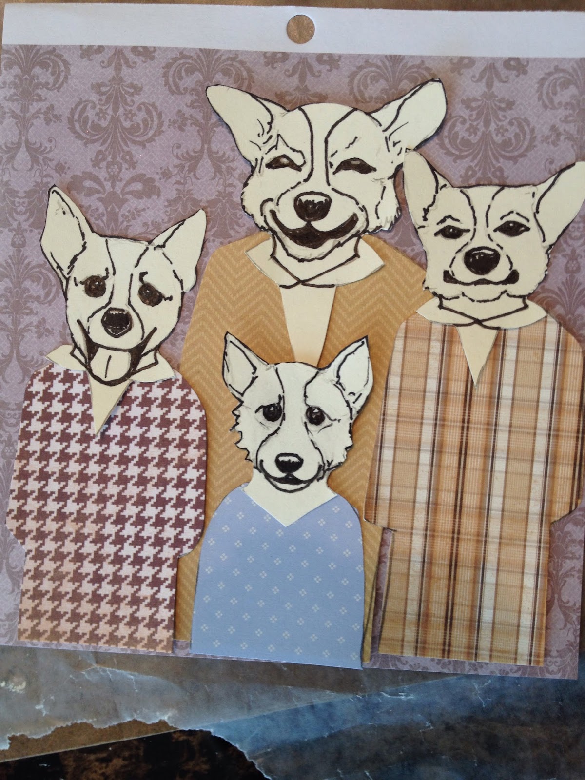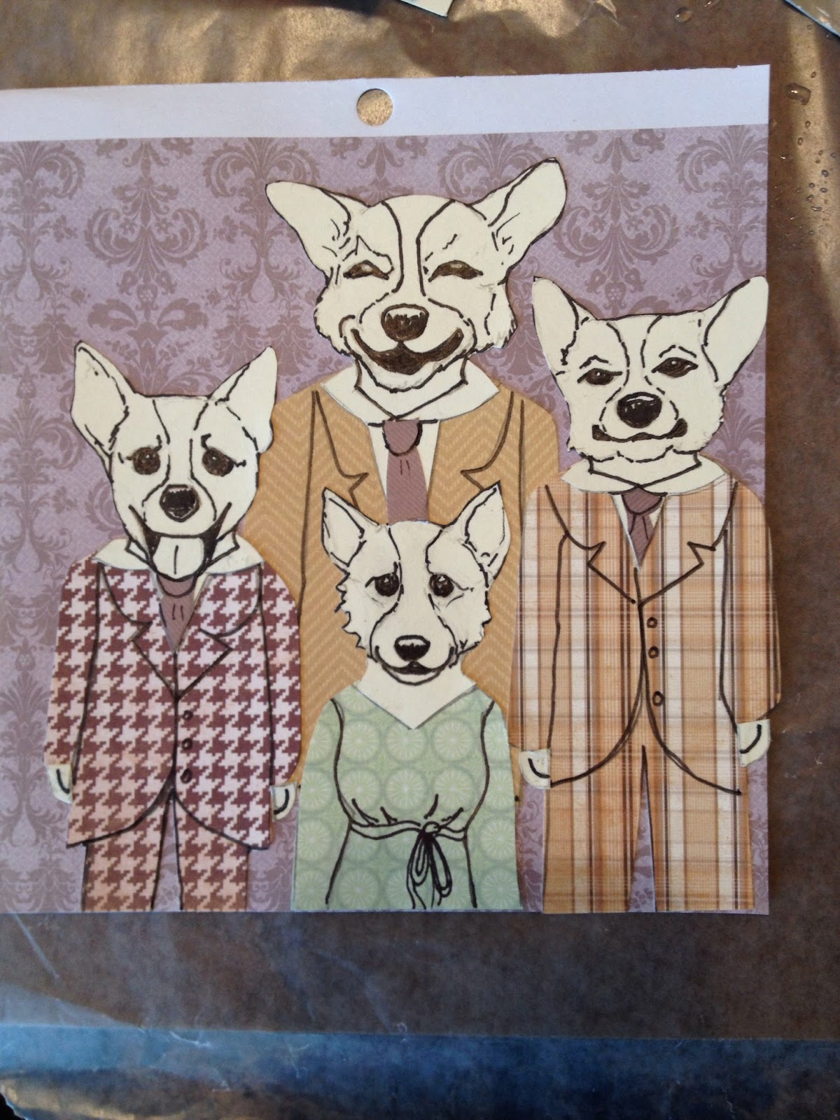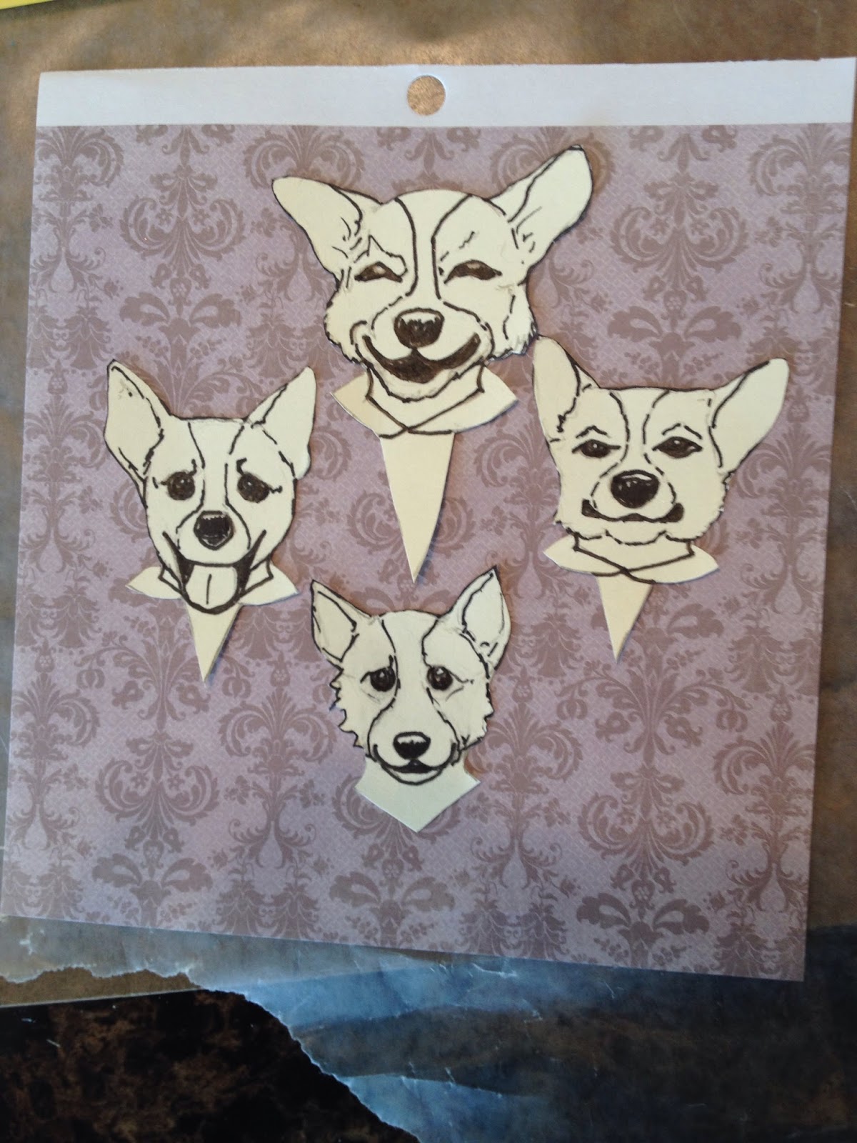 First I drew the heads with their necks and collars (if applicable), cut them out, and placed them on the “wallpaper” to get an idea of where they would need to go. |
