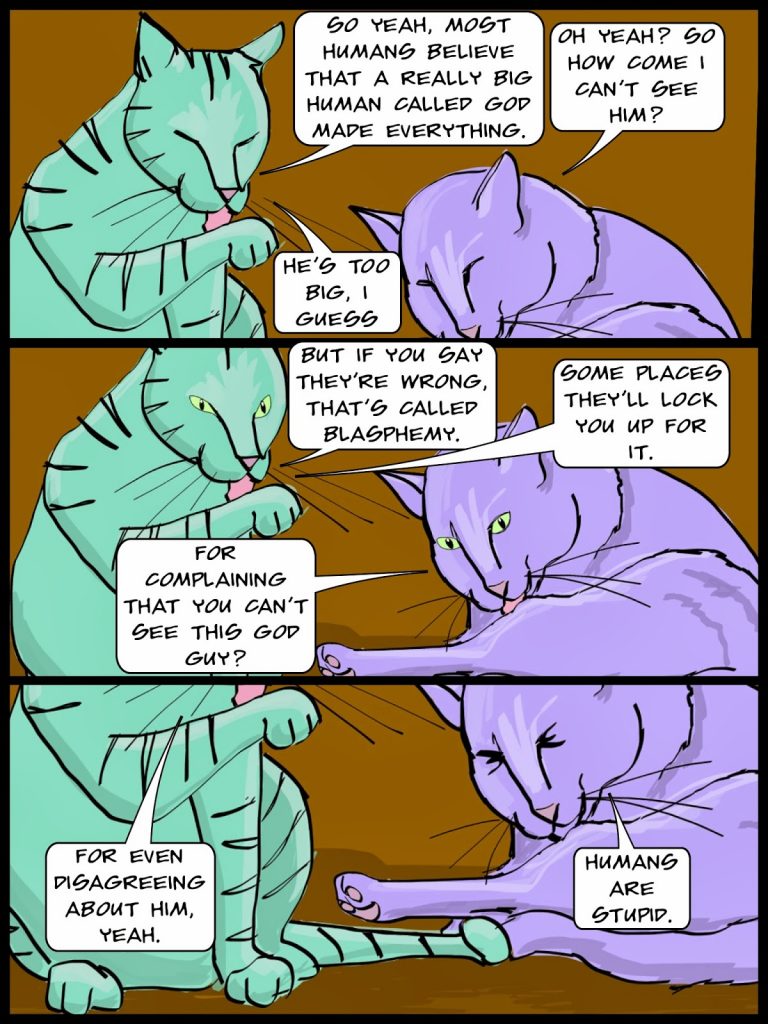 Cats discussing blasphemy