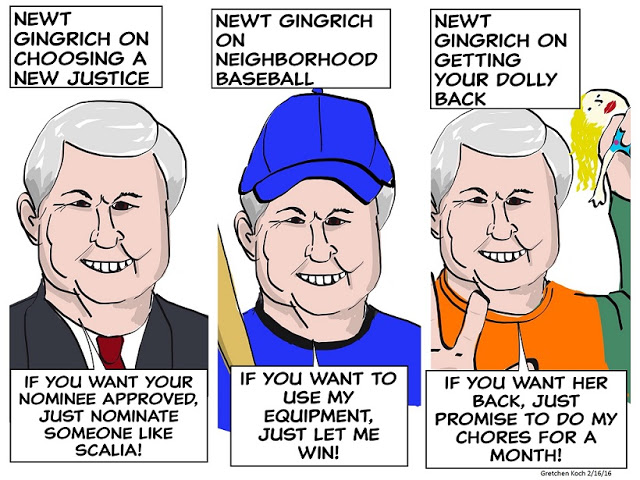 Newt Gingrich said on the February 14th edition Fox News’ Fox and Friends Sunday: No, no, no. He has every right to recommend. He doesn’t have every right to choose. This goes back to the Constitution. The Senate is not obligated to approve who he recommends. I mean, he has a simple model. If he really… Continue reading Just do what the Newt tells you