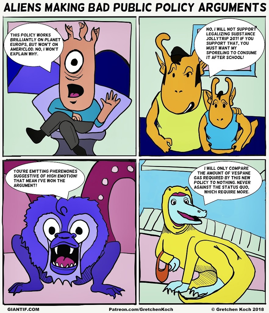 Aliens making bad public policy arguments Aliens making bad public policy arguments published on August 5, 2018Read more posts by the author of Aliens making bad public policy arguments, GretchenNo Comments on Aliens making bad public policy arguments Share this: Share on Facebook (Opens in new window) Facebook Share on Reddit (Opens in new window) Reddit Share on X (Opens in new window) X More Print (Opens in new window) Print Share on LinkedIn (Opens in new window) LinkedIn Share on Tumblr (Opens in new window) Tumblr Share on Pinterest (Opens in new window) Pinterest Share on Telegram (Opens in new window) Telegram Share on WhatsApp (Opens in new window) WhatsApp