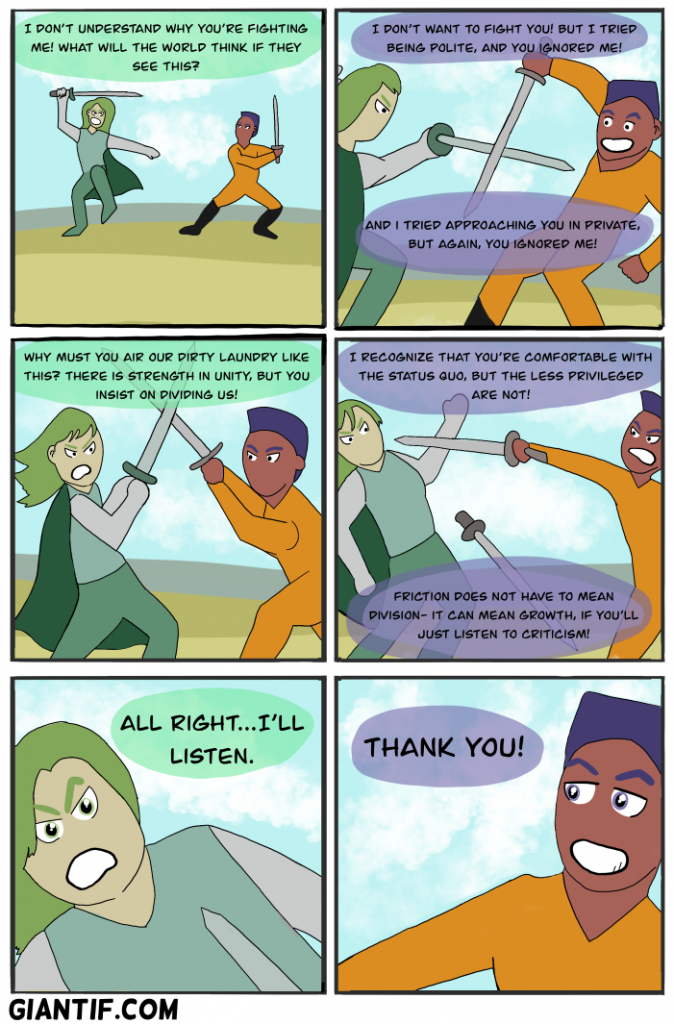 This comic is a tribute to the late Rachel Held Evans, 1981-2019. Specifically, to her 2013 essay entitled On being ‘divisive.’